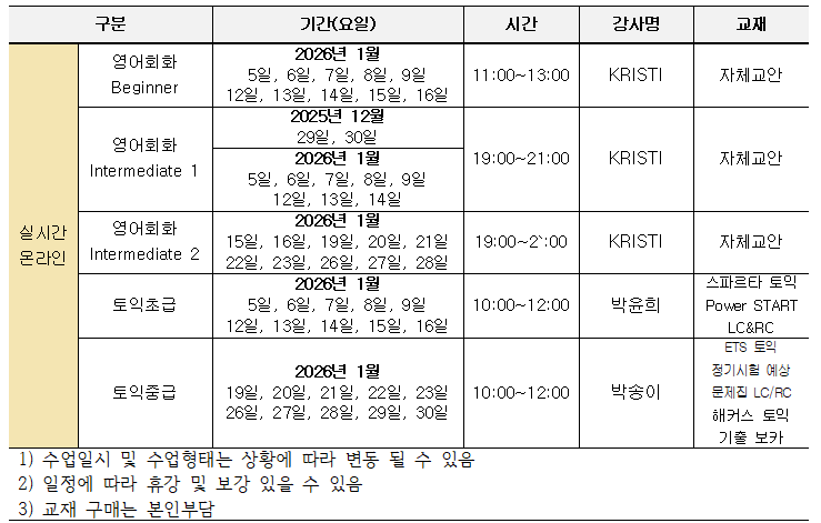 4. 모집인원: 회화반 7명 이상, 시험대비반 10명 이상 ※최소인원 변동될 수 있음