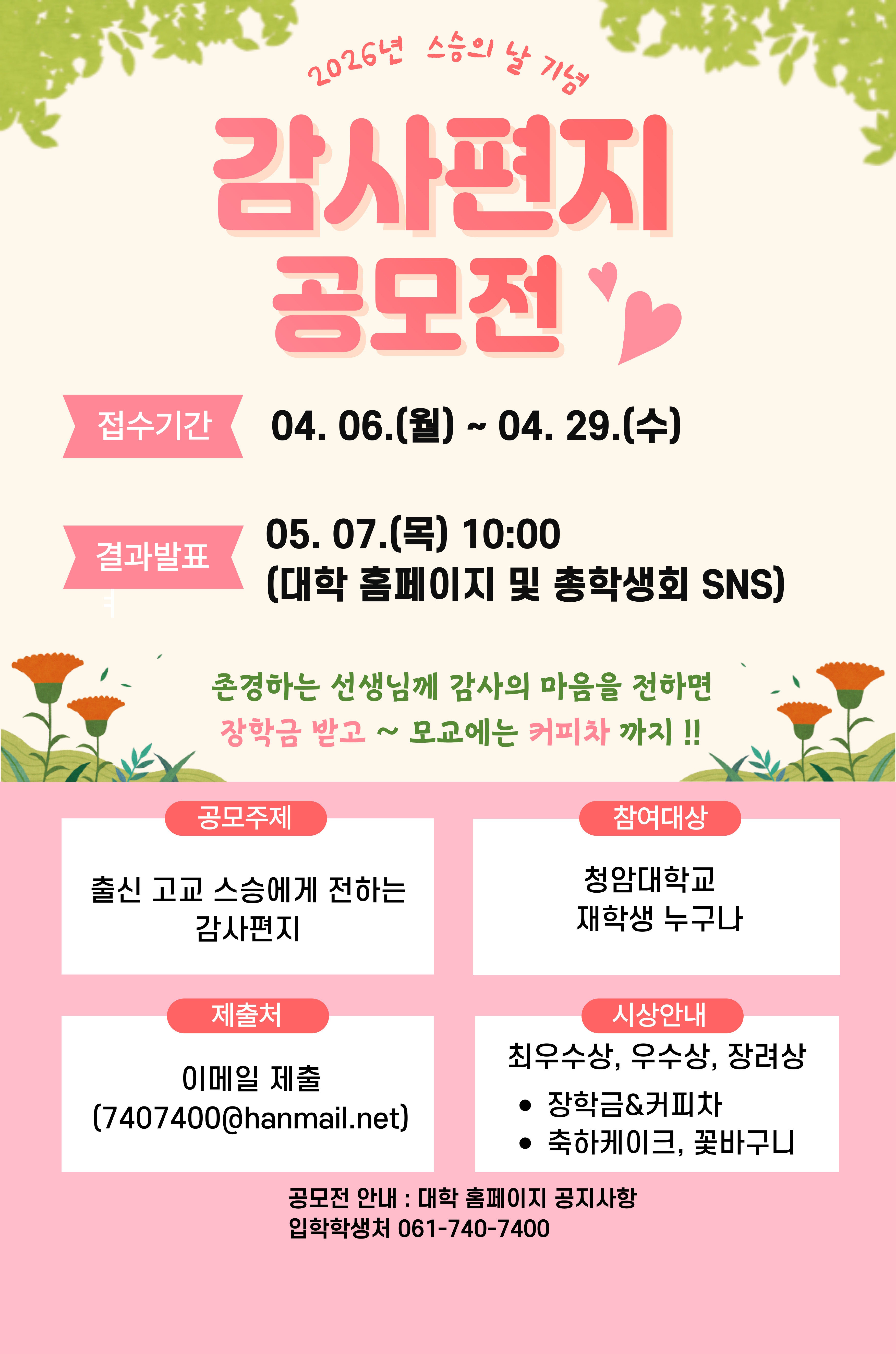 청암대학교, 2026학년도 1학기 개강 맞아 간식 나눔 행사청암대학교(총장직무대행 김성홍)는 202