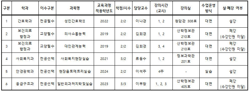 1. 2025학년도 2학기 동계 계절학기 설강 및 폐강교과목