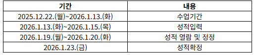 2. 2025학년도 2학기 동계 계절학기 일정