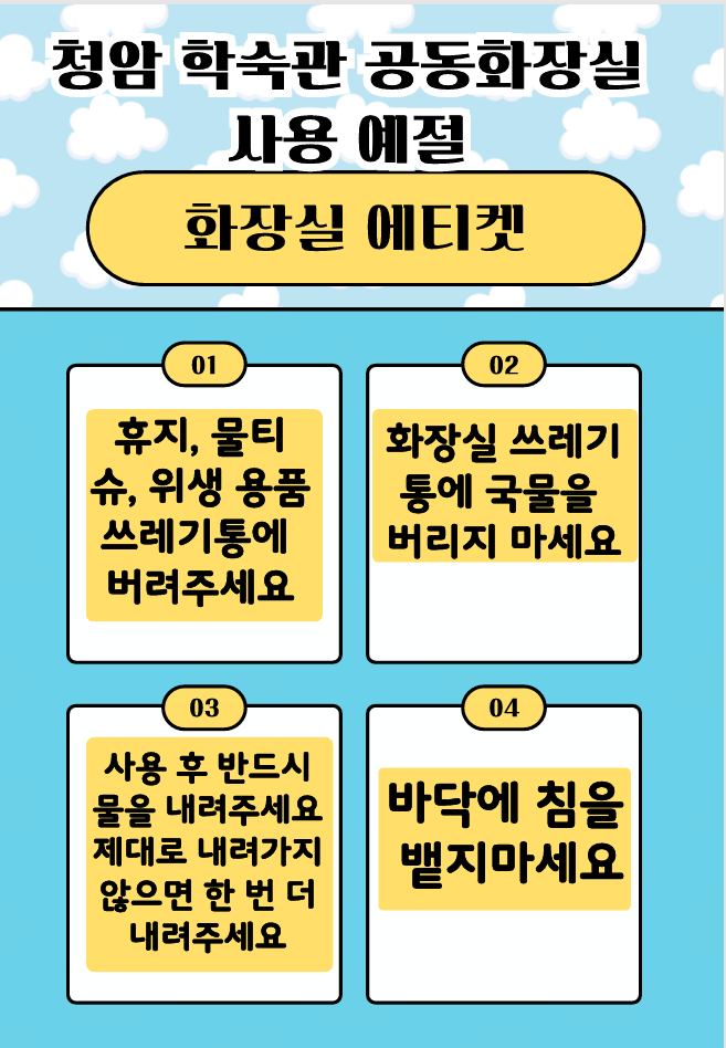 청암학숙관 공동화장실 사용예절안내
