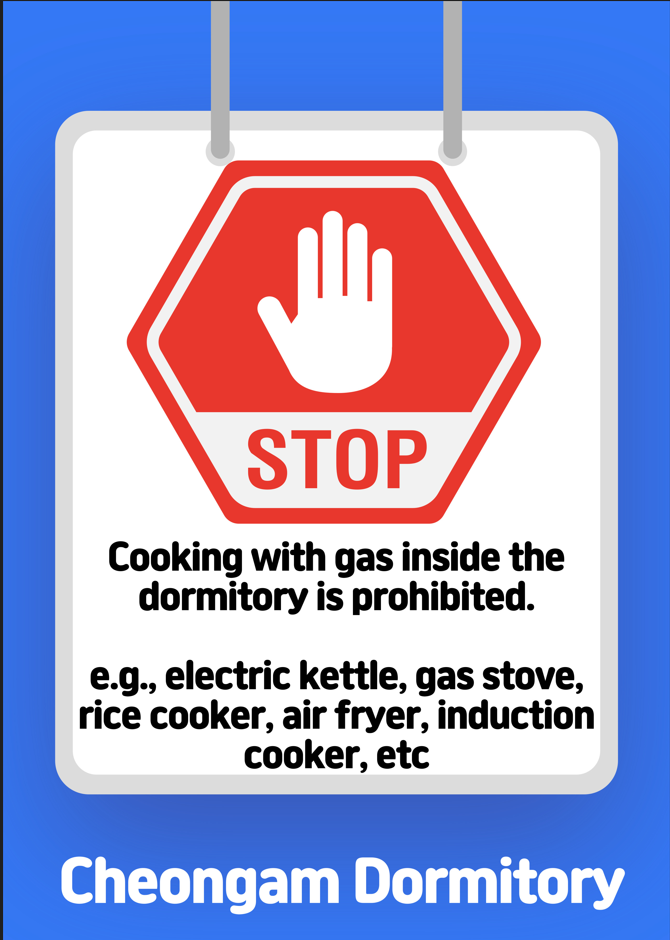 청암학숙관 취식 취사 금지 안내(No Eating or Cooking in Cheongam Dormitory)