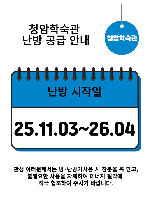 2025학년도 2학기 청암학숙관 난방 공급 안내