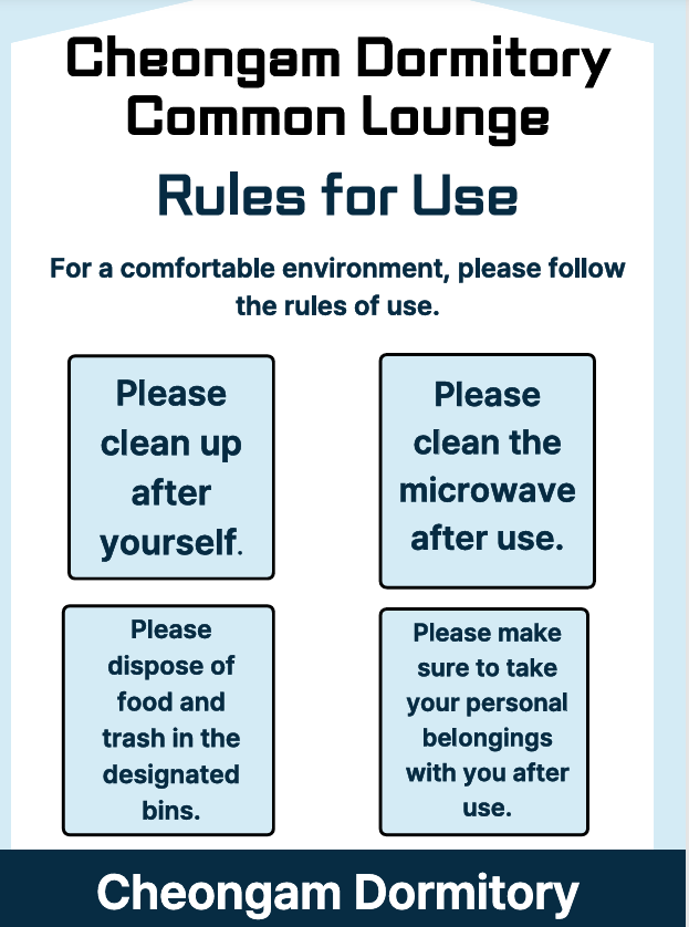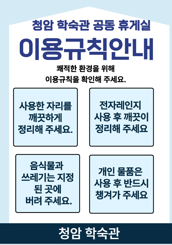 청암학숙관 공동 휴게실 이용안내