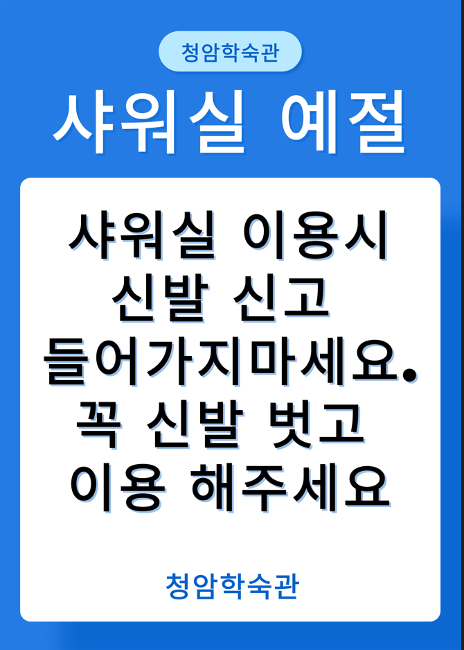 [관생 필독] 각 층 샤워실 이용 시 입구에서 신발을 벗고 이용 협조 바랍니다.